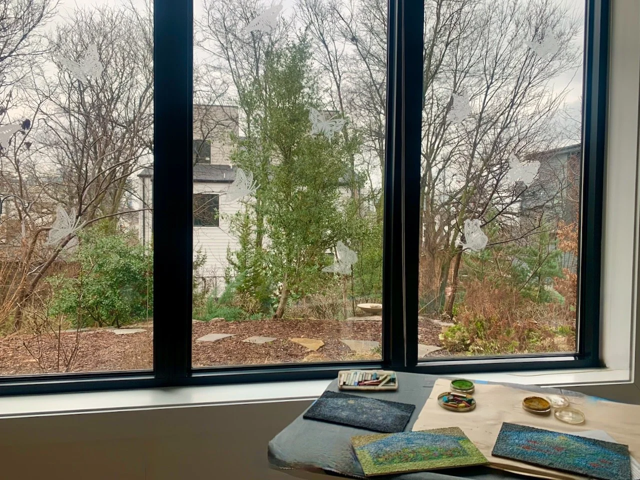 She paints abstract landscapes and figurative works in a range of mediums including oil, acrylic, gouache, ink, pencil, and digital. She also creates three-dimensional mixed-media sculpture and relief.